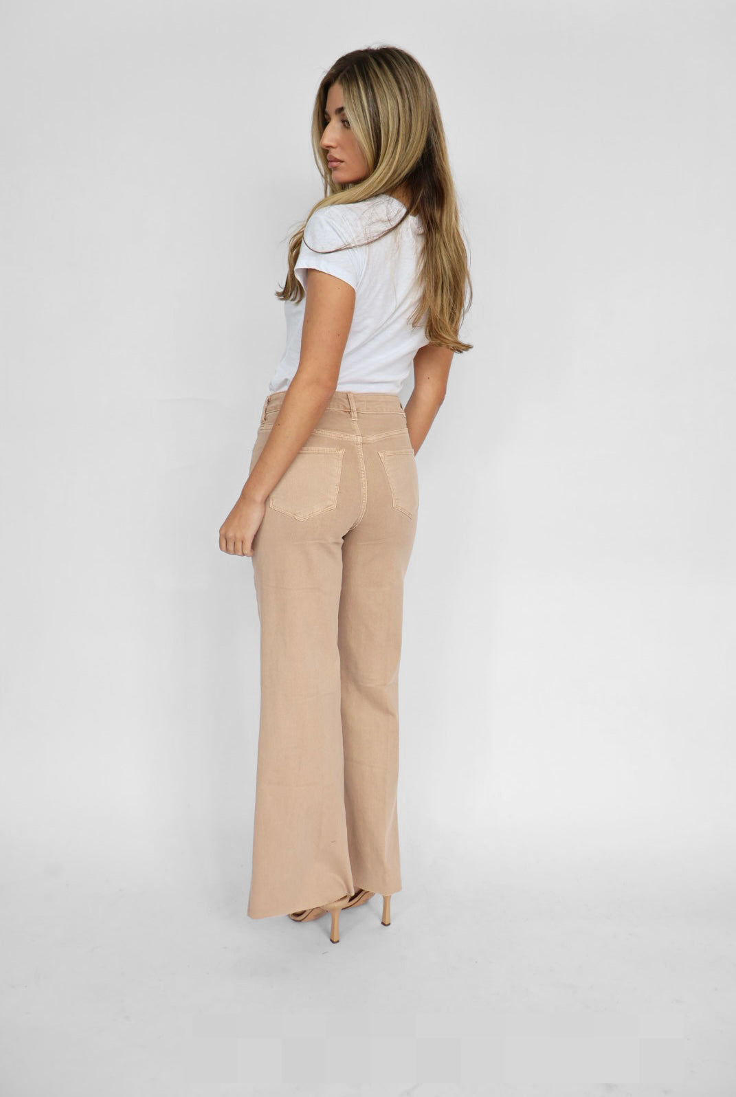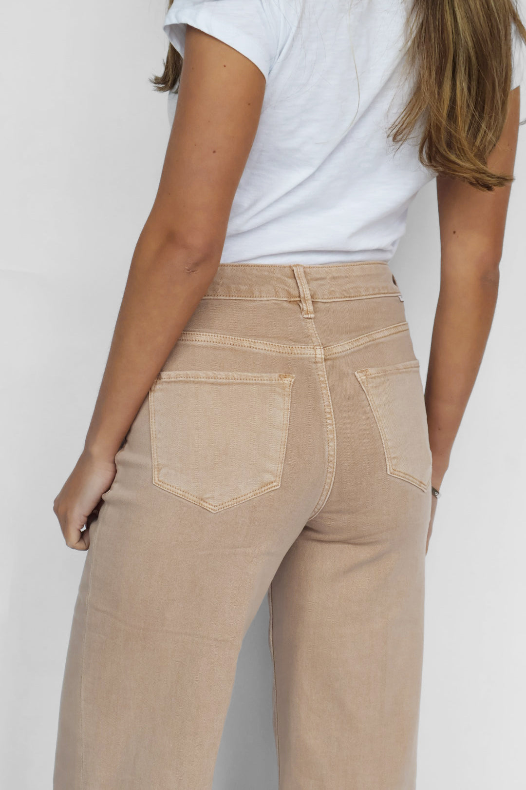The Dear John Fiona Jean in Warm Taupe blends elevated structure with effortless comfort. Designed with a flattering high-rise waistband, this silhouette offers a smooth, held-in feel while elongating the frame. The relaxed wide-leg cut creates a clean, contemporary shape that feels both polished and on-trend.