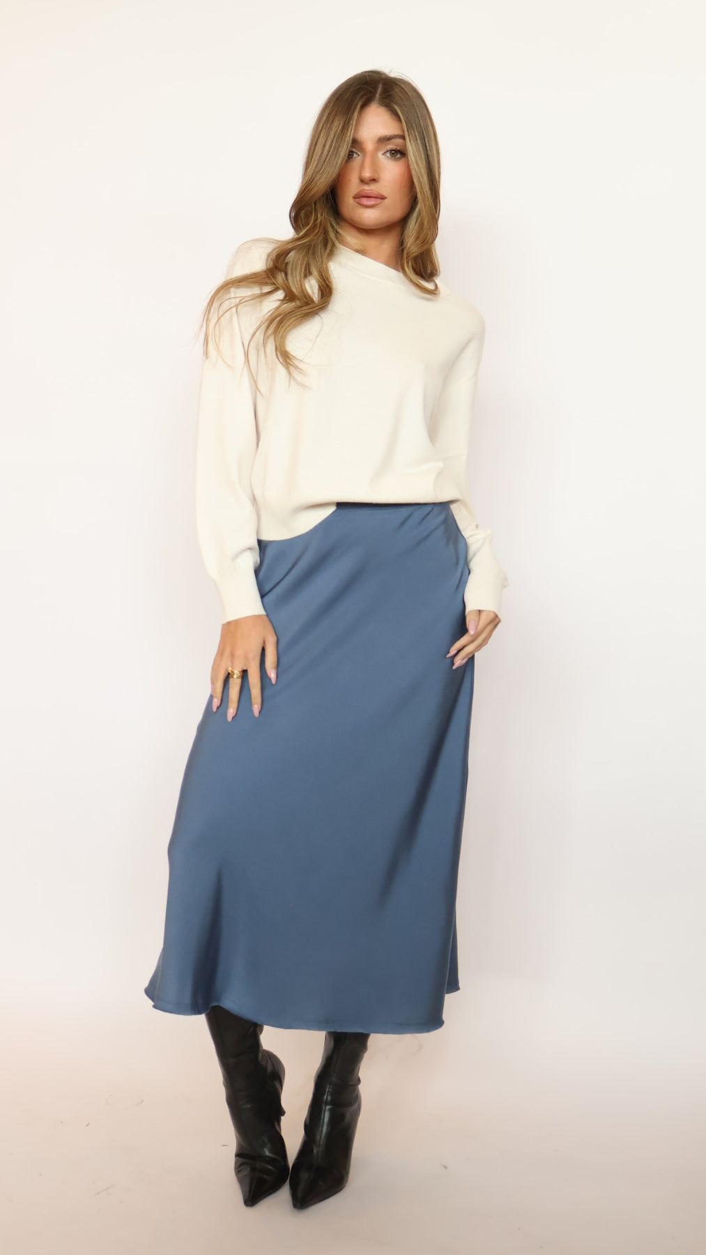 Effortlessly elegant and endlessly versatile, the Satin Midi Skirt brings a touch of sophistication to any outfit. Crafted from smooth, silky satin that drapes beautifully, it offers a flattering mid-length silhouette with a subtle sheen that catches the light just right. Designed to move with ease, this skirt transitions seamlessly from day to night — pair it with a cozy sweater, a crisp blouse, or a sleek cami for a polished look.