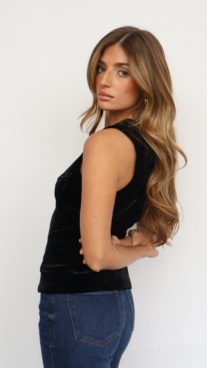 The rich texture of velvet and the modern asymmetrical cut create a flattering fit that pairs effortlessly with tailored trousers, sleek skirts, or denim for a chic night-out look.