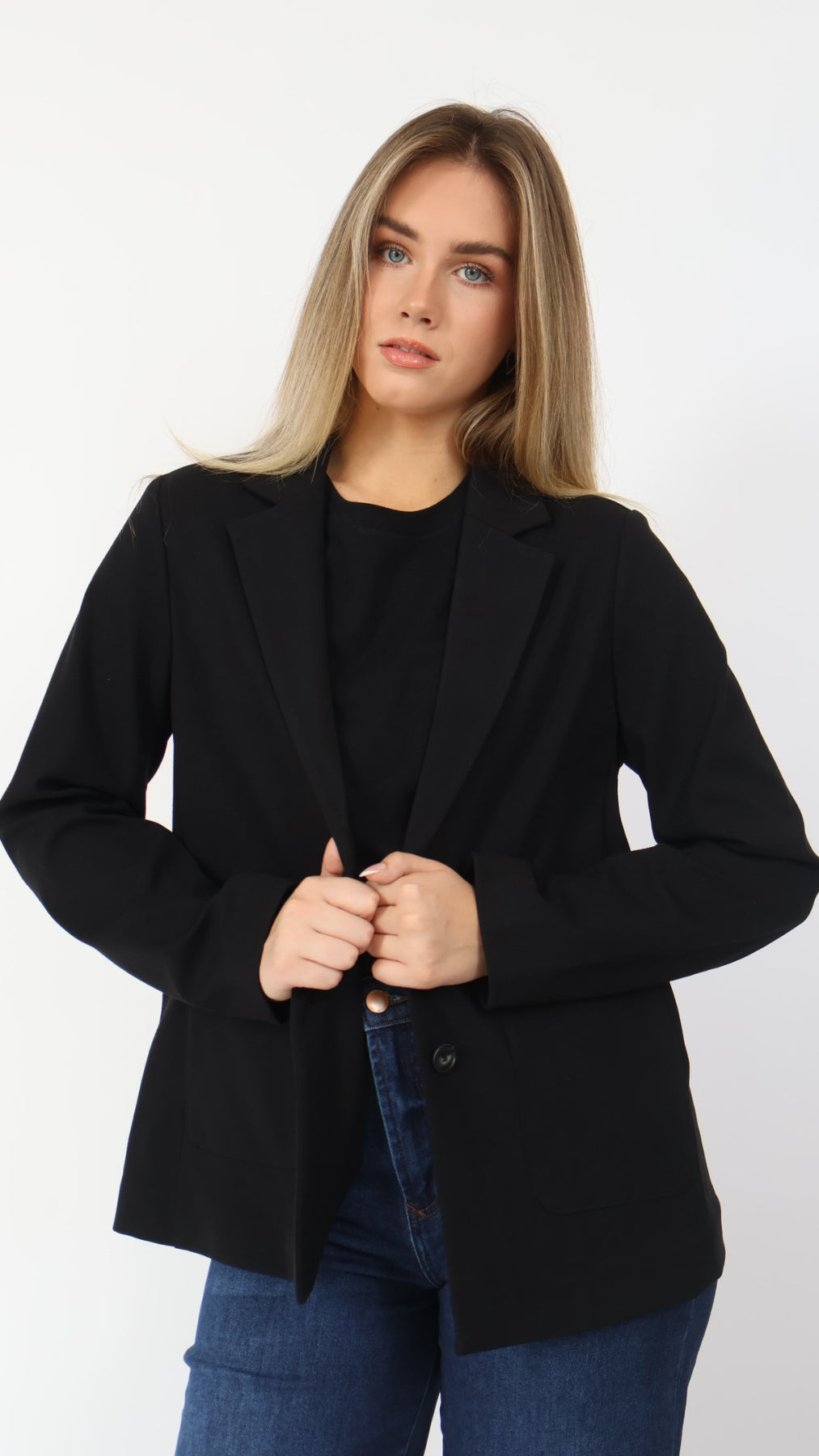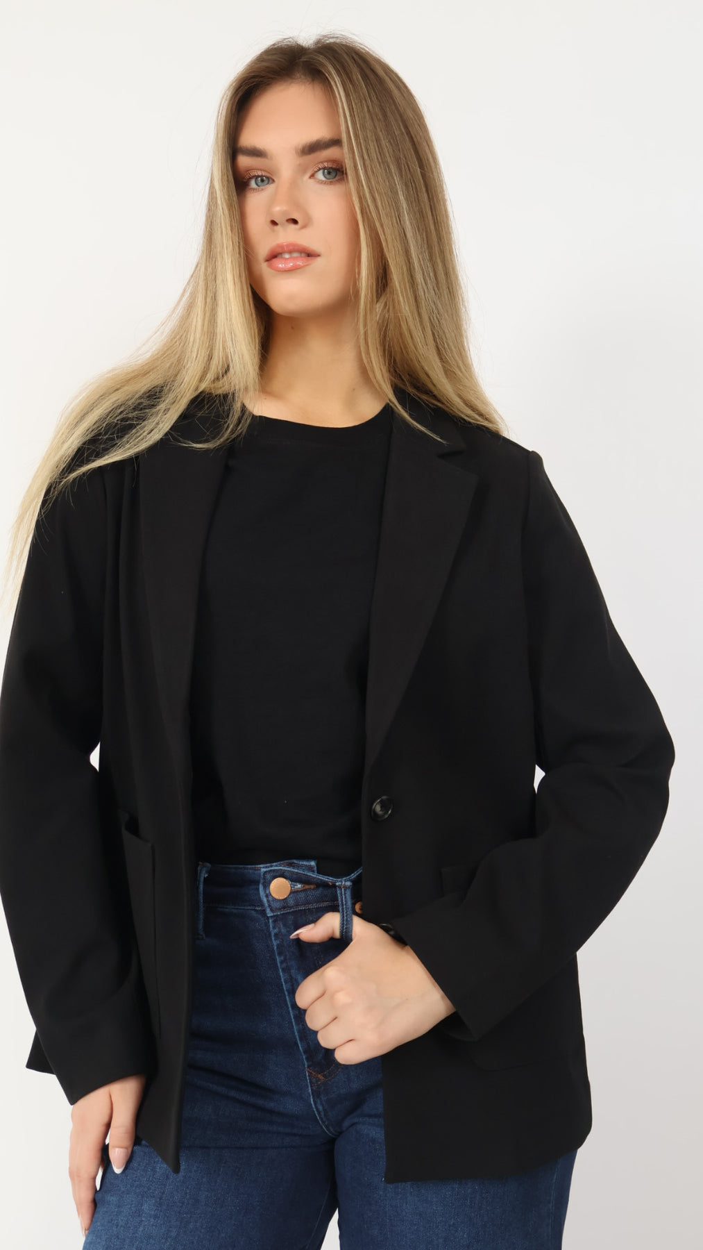 Featuring a classic notch lapel, button-front closure, and functional pockets, it’s the ultimate layering piece—equally at home over trousers for the office, denim for weekends, or dresses for a night out.