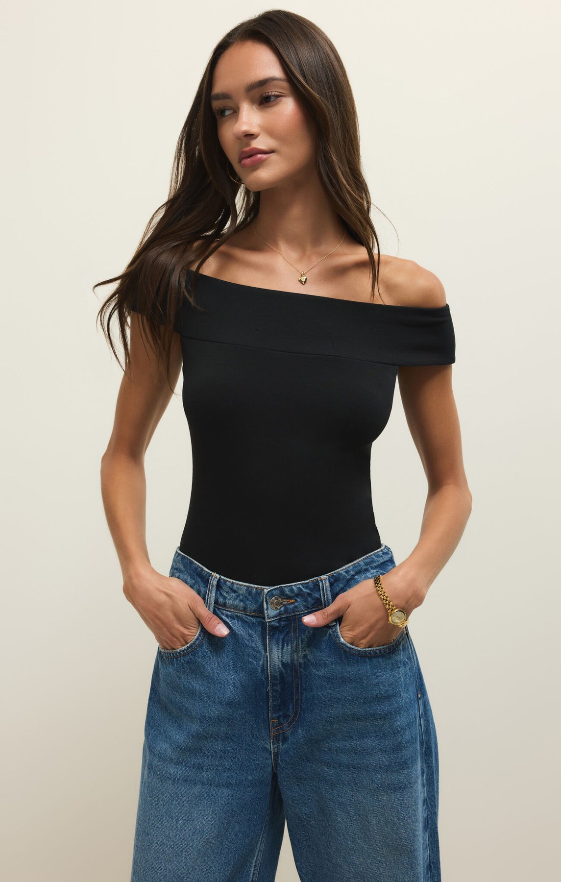 A flattering, off-the-shoulder neckline with a fit and feel that's like second skin.