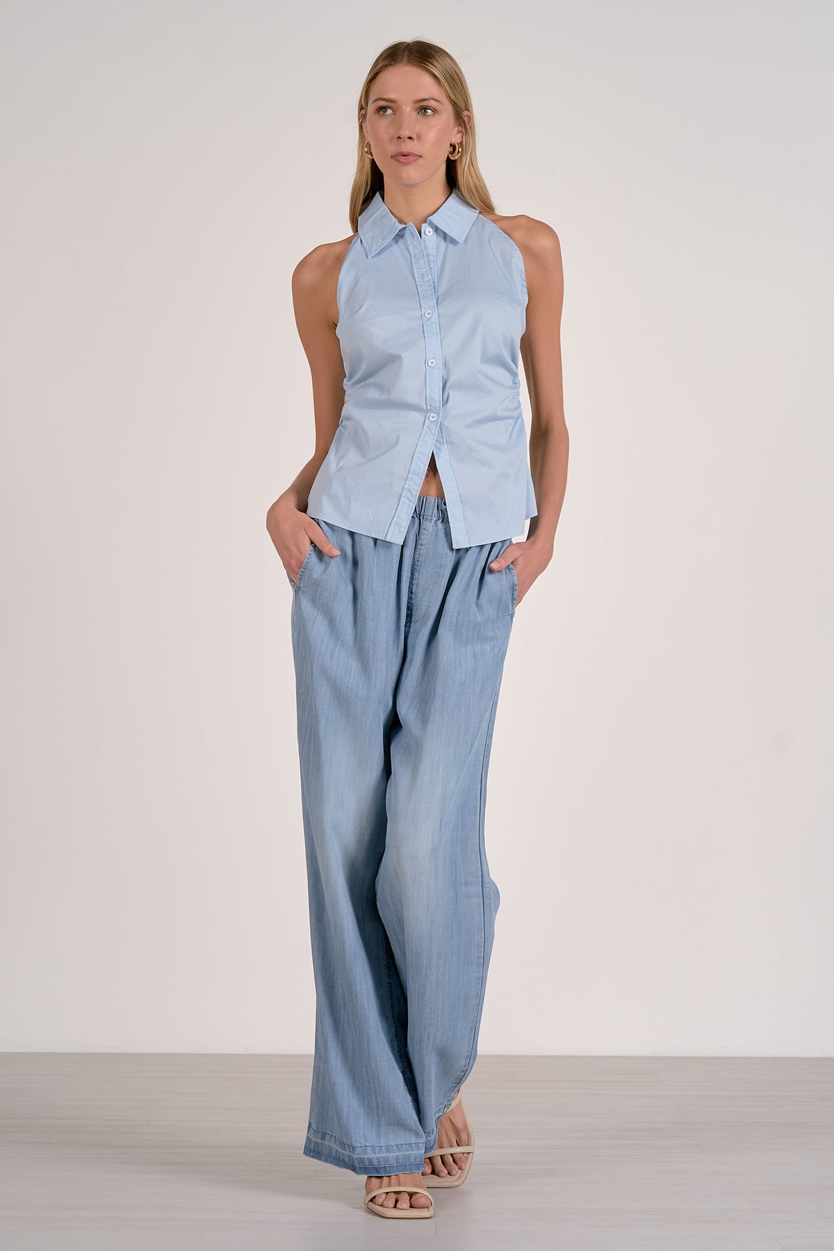 Effortless sophistication meets contemporary style with this sleeveless collar top.