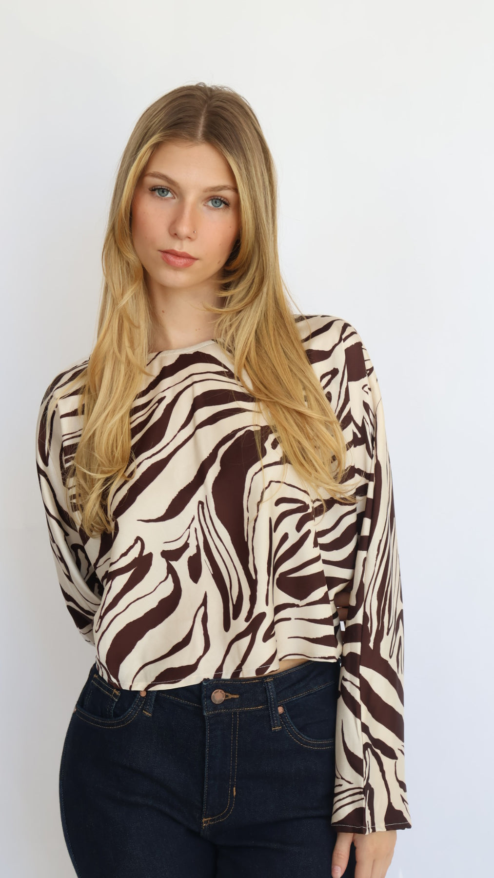 Bring a touch of bold sophistication to your wardrobe with this animal print satin top. Designed with a relaxed boat neckline and dramatic batwing sleeves, it drapes effortlessly for a flattering, elevated silhouette. The silky satin finish adds a luxe sheen, while the animal print makes a confident style statement.