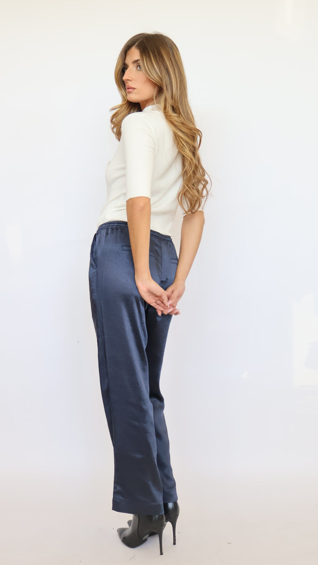 Effortlessly sleek and endlessly wearable, these Satin Straight Pants are the perfect blend of comfort and polish. Designed with a soft, fluid drape and subtle sheen, they feature a relaxed straight-leg silhouette with an elastic waistband and adjustable self-tie for the perfect fit.