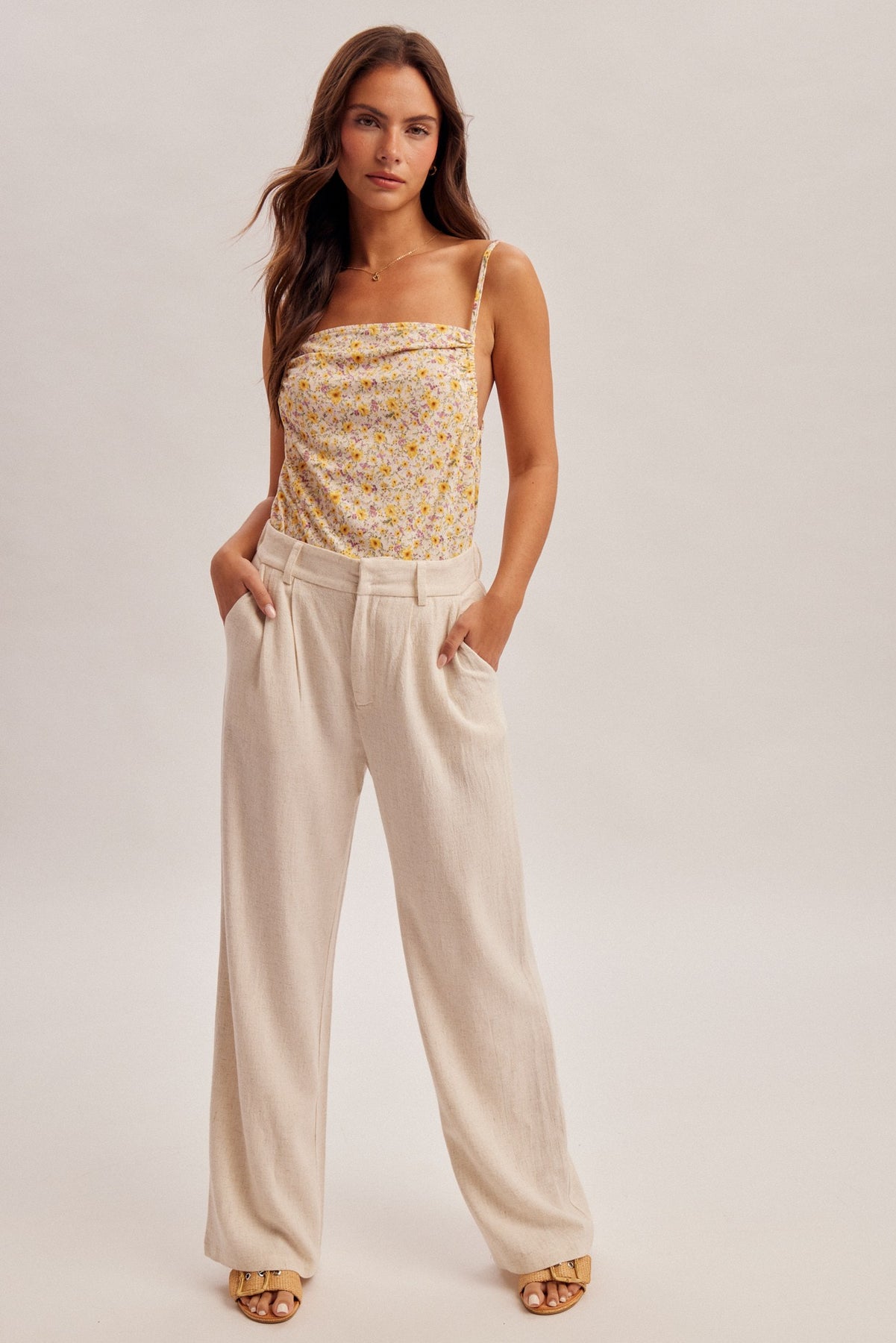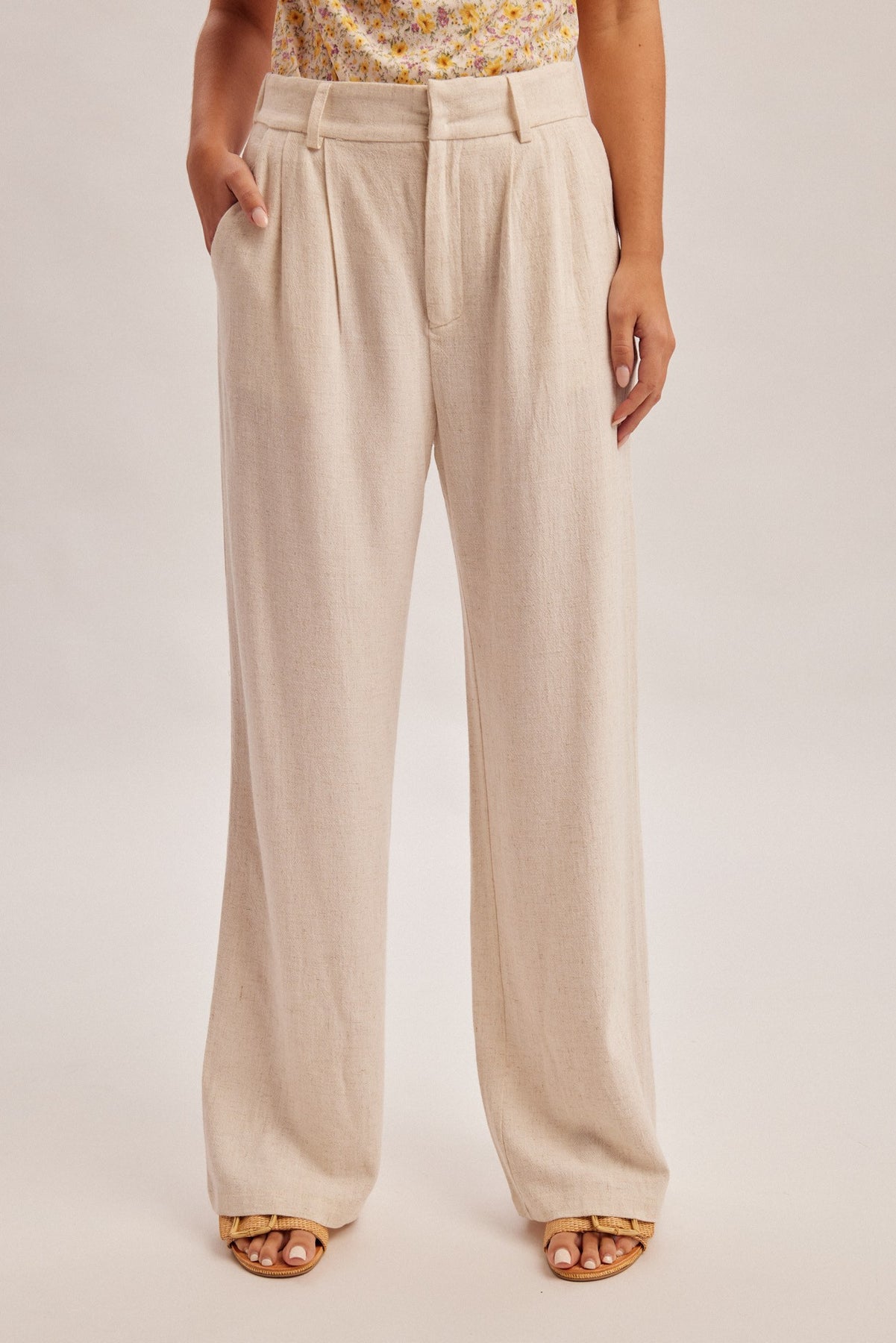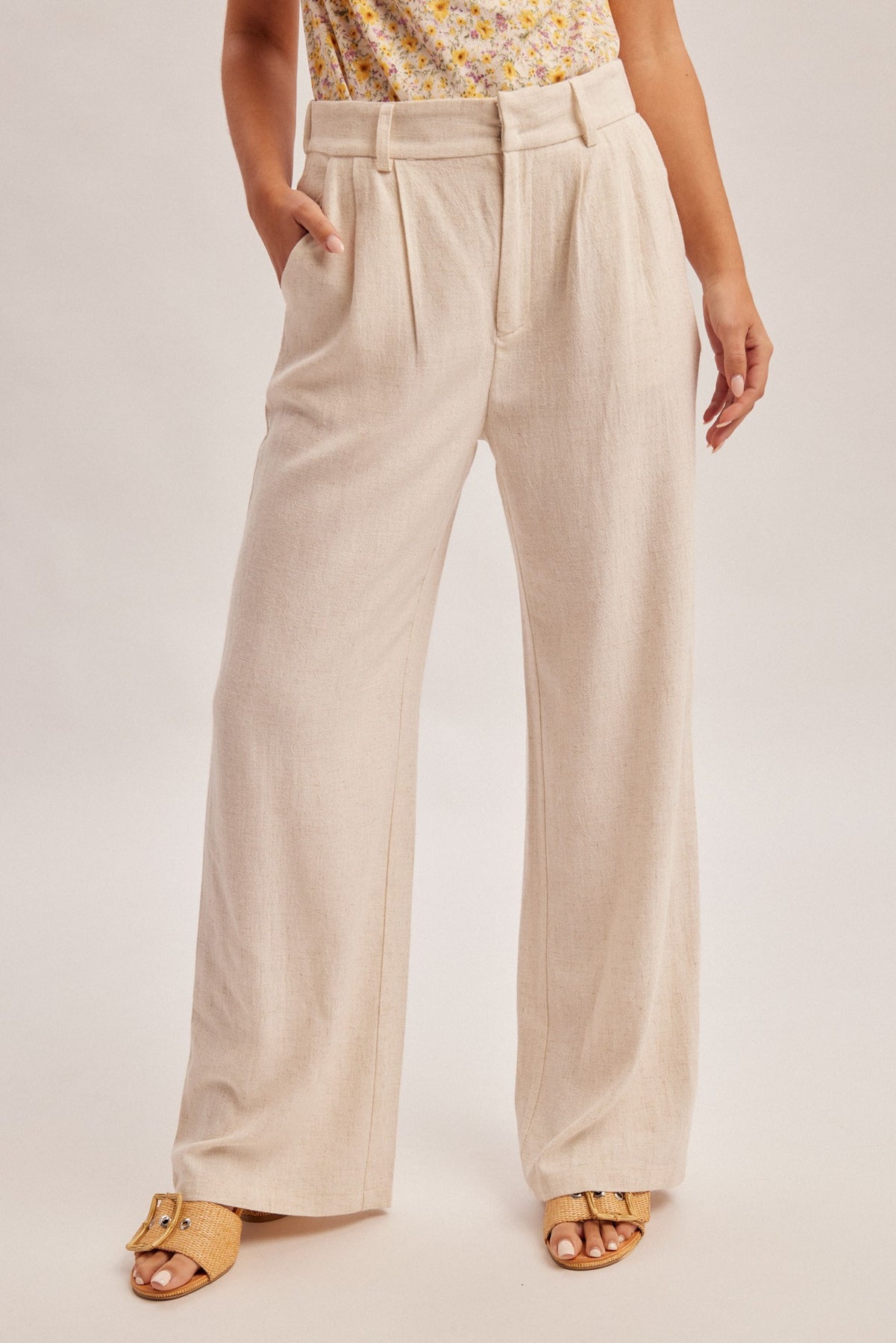 WIDE LEG TROUSER WITH POCKETS -STRETCH WAIST BACK FOR COMFORT -70% VISCOSE 30% LINEN