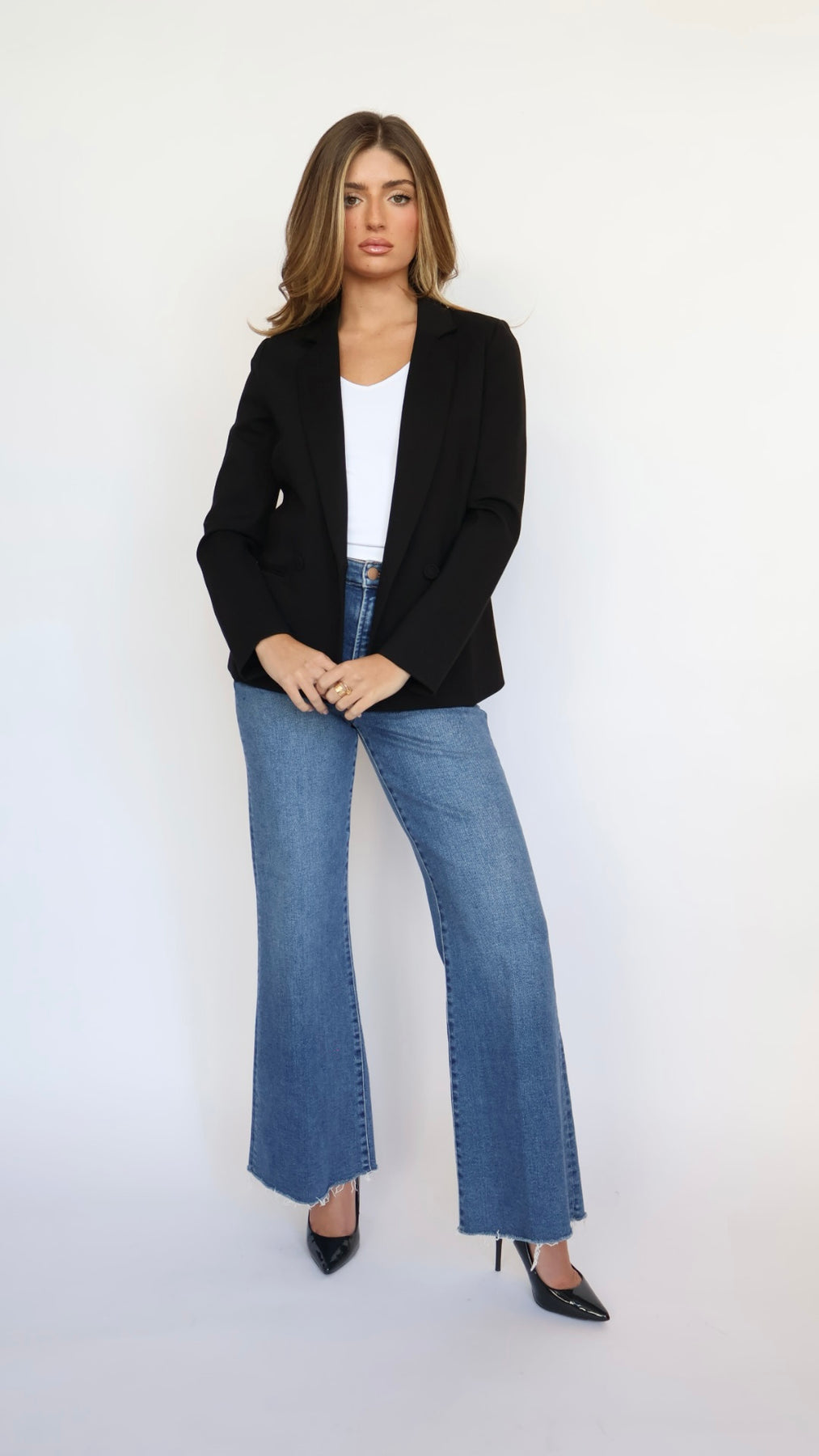 Crafted with comfort-stretch denim, the Fiona hugs through the waist and hip, then relaxes into a wider leg for a lengthening effect that's endlessly flattering. Finished with a clean hem and classic five-pocket styling, these jeans are easy to dress up or down—pair with boots, sneakers, or heels for effortlessly polished style.